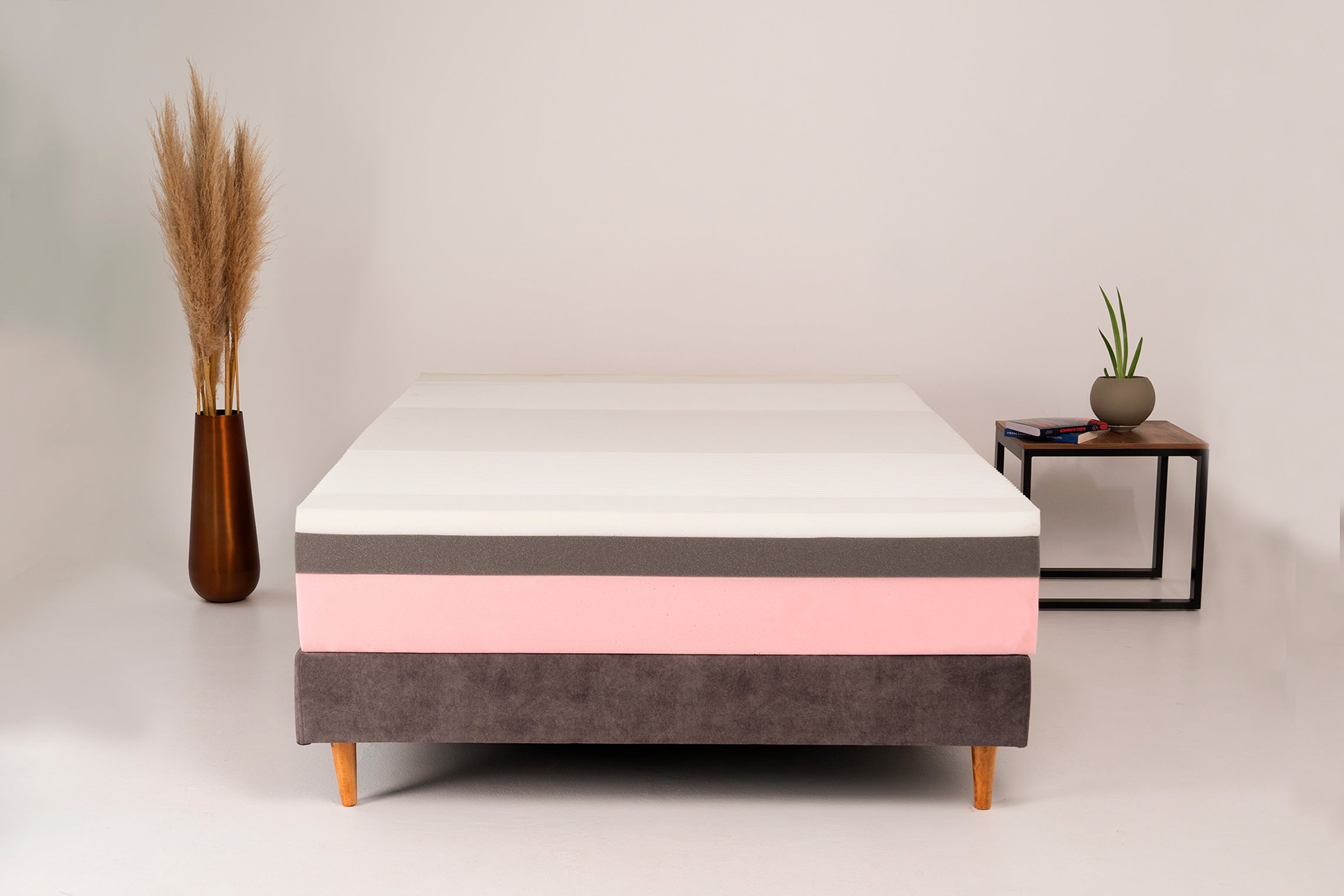 - Memory Foam con infusiones de cobre que ayudan a disipar el calor manteniendo tu colchón fresco.